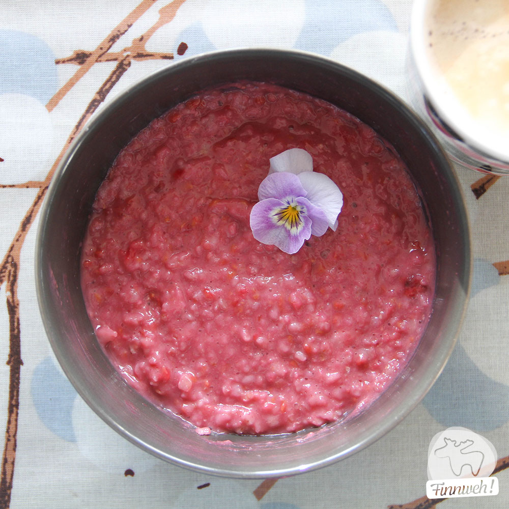 Heidelbeeren brauchen meist nur ein bisschen Zucker/Xylit zur Unterstützung, falls sie recht sauer sind. Bei Himbeeren nehme ich ausnahmsweise Vanillezucker. Das passt herrlich zum Himbeergeschmack. Und was besonders hübsch ist, sind die tollen Farben, die einem da entgegen kommen. Rosa-Rot und Lila-Blau färbt sich der Puuro wenn ihr die Beerchen einrührt.