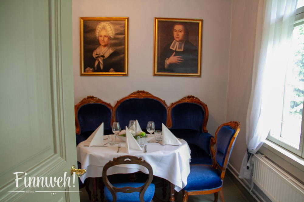 Nach dem geschichtlichen Rundgang in vergangene Zeiten sollte ein lounas, also ein Mittagessen, im Hakkarin Kartano nicht fehlen. Das alte Anwesen schließt sich direkt an den Museumsweg an und beherbergt in mehreren herrschaftlichen Zimmern ein exquisites Restaurant.