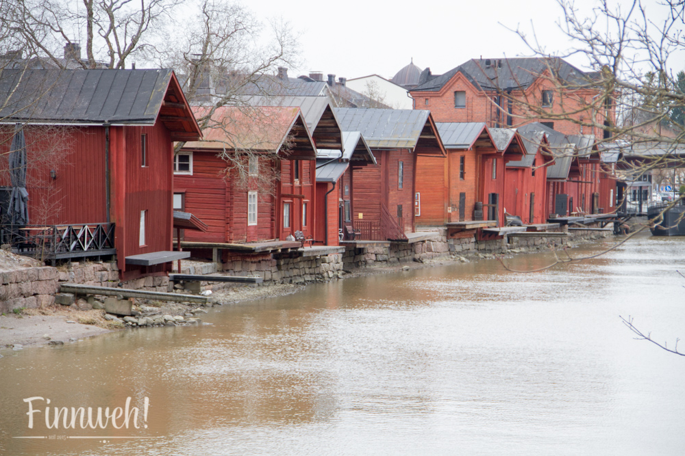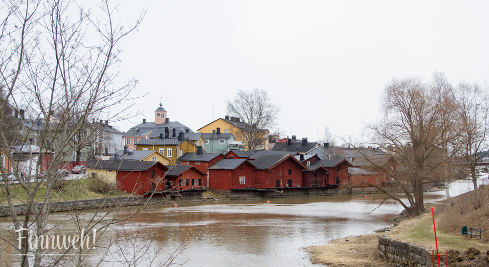 Obwohl es schon Ende April ist, ließ der Frühling noch lange auf sich warten. Eigentlich erinnerte die Stimmung bei der Anfahrt aus Helsinki an einen grauen Herbsttag. Doch schon als der Bus die Brücke hinein nach Porvoo passierte, begrüßten uns die auffallend roten Häuser am Porvoonjoki von weitem.