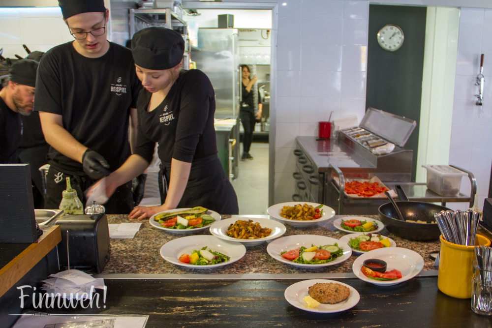 Nach dem streunen durch die engen, alten Gassen meldet sich der Hunger. Das Ziel ist das „Zum Beispiel“* – ja, genau, ein deutsches Wortspiel! Begeisterung macht sich nicht nur wegen der Namenswahl des modernen Restaurants breit, in der offenen Küche zaubern die Köche leckere leichte Gerichte mit lokalen Zutaten. Sehr trendig und hipp und sehr beliebt zum lounas – dem Mittagstisch, was wir gerne nutzen. Porvoo liegt so nah an der Ostsee und dem Archipel, dass man unbedingt ein Fischgericht testen sollte! Auch Vegetarier und Veganer kommen hier geschmackvoll auf ihre Kosten!