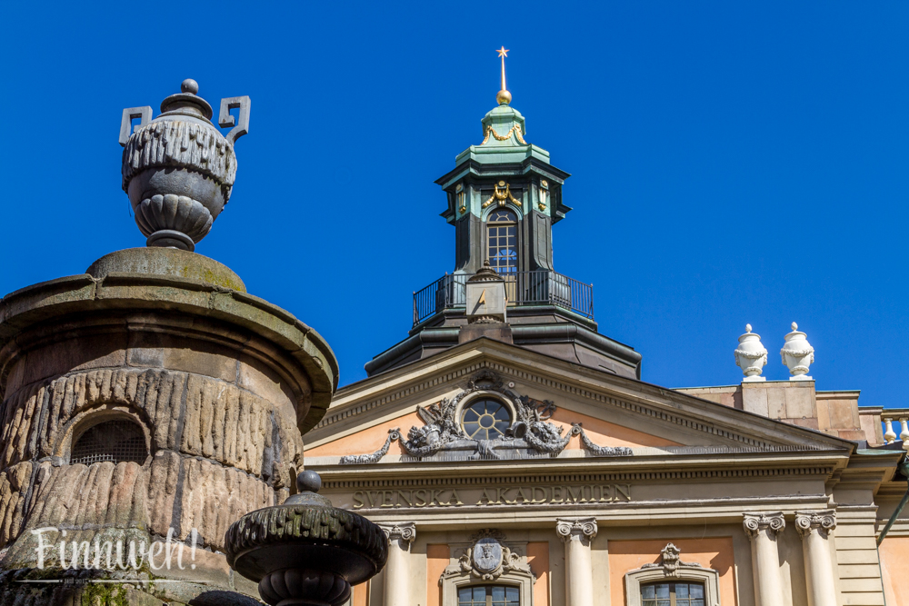 Der alte Stadtteil besteht allerdings nicht nur aus lieblichen Häuserreihen. Das Stadtschloss der schwedischen Königsfamilie empfängt hier schwedische Untertanen zur Audienz genauso, wie auch die Besucher aus aller Herrenländer. Vorbei an der Storkyrka schlendert man auf den Stortorget zu. Dort entdeckt man dieses fast weltberühmte Ensemble aus den drei farbigen antiken Stadthäusern, einen Brunnen, bunten Cafés und dem Nobelmuseum.