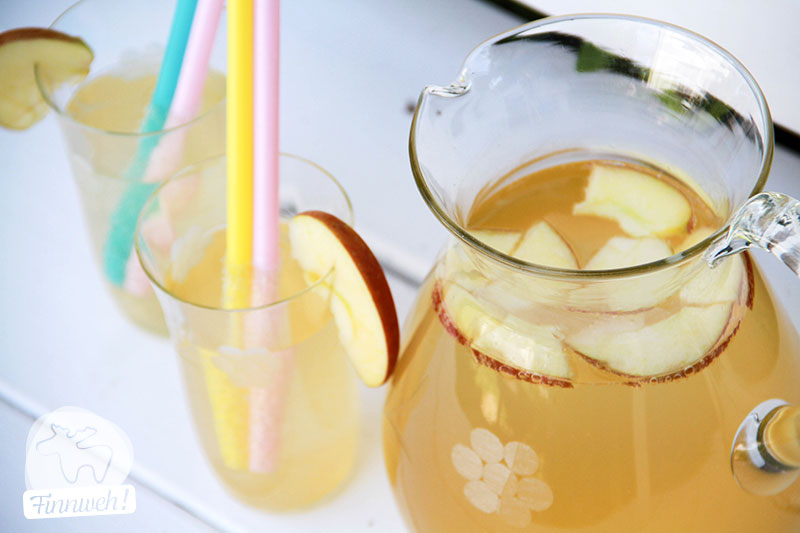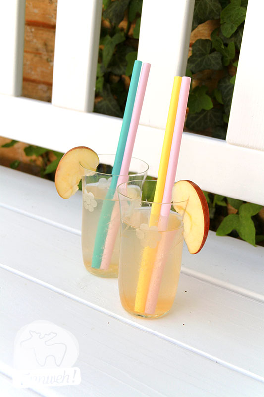 - Zur Deko (vor allem für Kinder und verspielte Erwachsene immer gut) Apfelstückchen in die Brause schneiden.