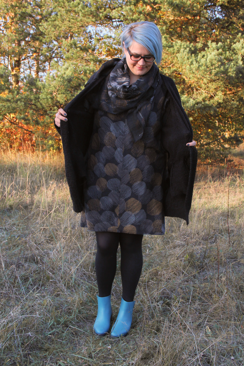 Das gilt besonders für mein neues Kleid „Pirjo“ von Gudrun Sjöden* aus ihrer diesjährigen Herbst-Kollektion (Davon habe ich euch ja schon in „Mit Stil durch Herbst und Winter“ berichtet). Diese war unter anderem von Finnland inspiriert und jetzt schaut euch einfach das herbstliche Muster an. Die Farben sind so typisch finnisch und auch so herrlich herbstlich. Bin doch sehr verliebt in das Kleid, das sogar Taschen hat!