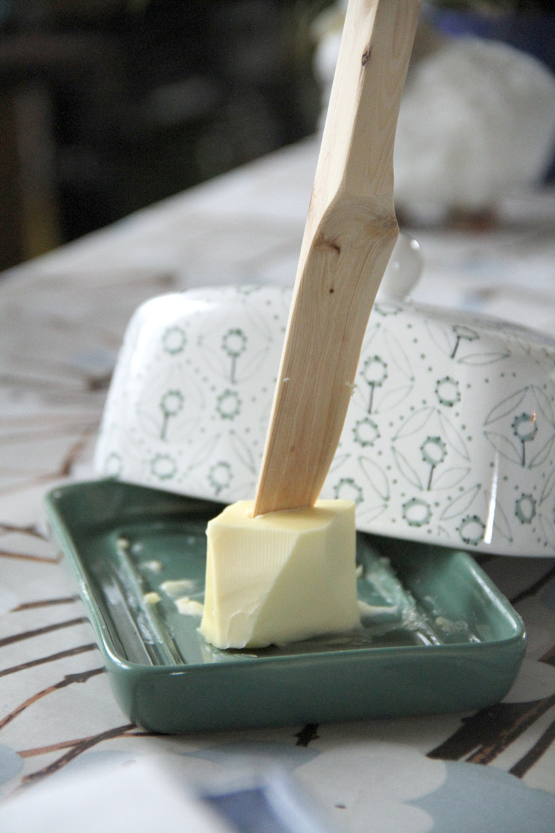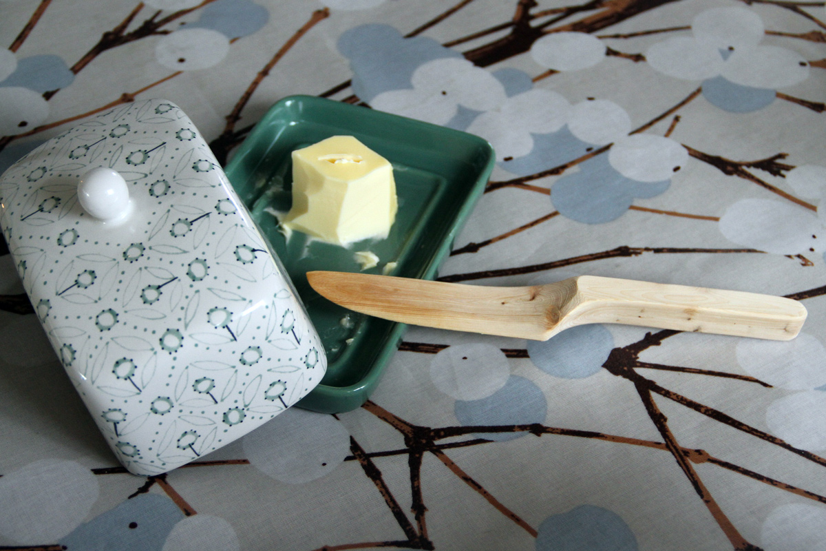 Seit je her wollte ich ein Buttermesser aus Holz. Man kennt sie eher in der Form wie einen platten Löffel. Dieses Jahr zur Juhannus-Feier auf Seurasaari hab ich mein perfektes Buttermesser gefunden. An einem Stand mit ganz vielen hübschen Holzsachen hab ich mein Voiveitsi gefunden. Jeden Morgen erfreue ich mich daran. Man kann es ganz einfach abspülen jedoch ist es natürlich nicht für die Spülmaschine geeignet.