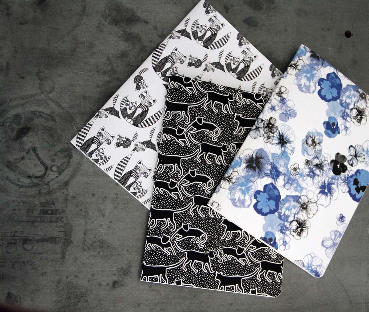 Im Suomalainen Kirjakauppa habe ich diesmal zwar keine brillant gestalteten Bücher gefunden. Aber schon alleine die Schreibheftchen, die ich so sehr mag, sind hier mit wirklich lieben Mustern und Dekoren zum Verkauf angeboten. Man sieht, dass hier selbst bei kleinen Alltagsgegenständen auf gutes Design Wert gelegt wird. Bei uns sind solche Schreibbüchlein oft eher profan, fast schon proletenhaft gestaltet. Die drei Hefte sind innen mit Naturpapier bestückt und auf jeder Seite sind dezent Linien eingezogen. Hergestellt wurden sie von karto.fi.