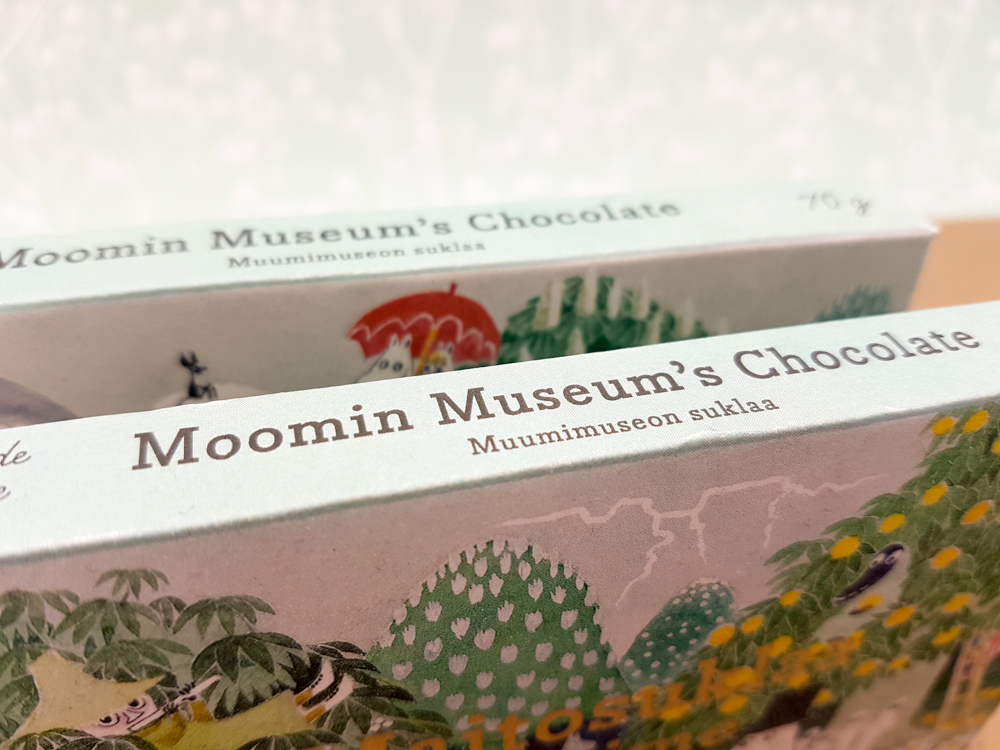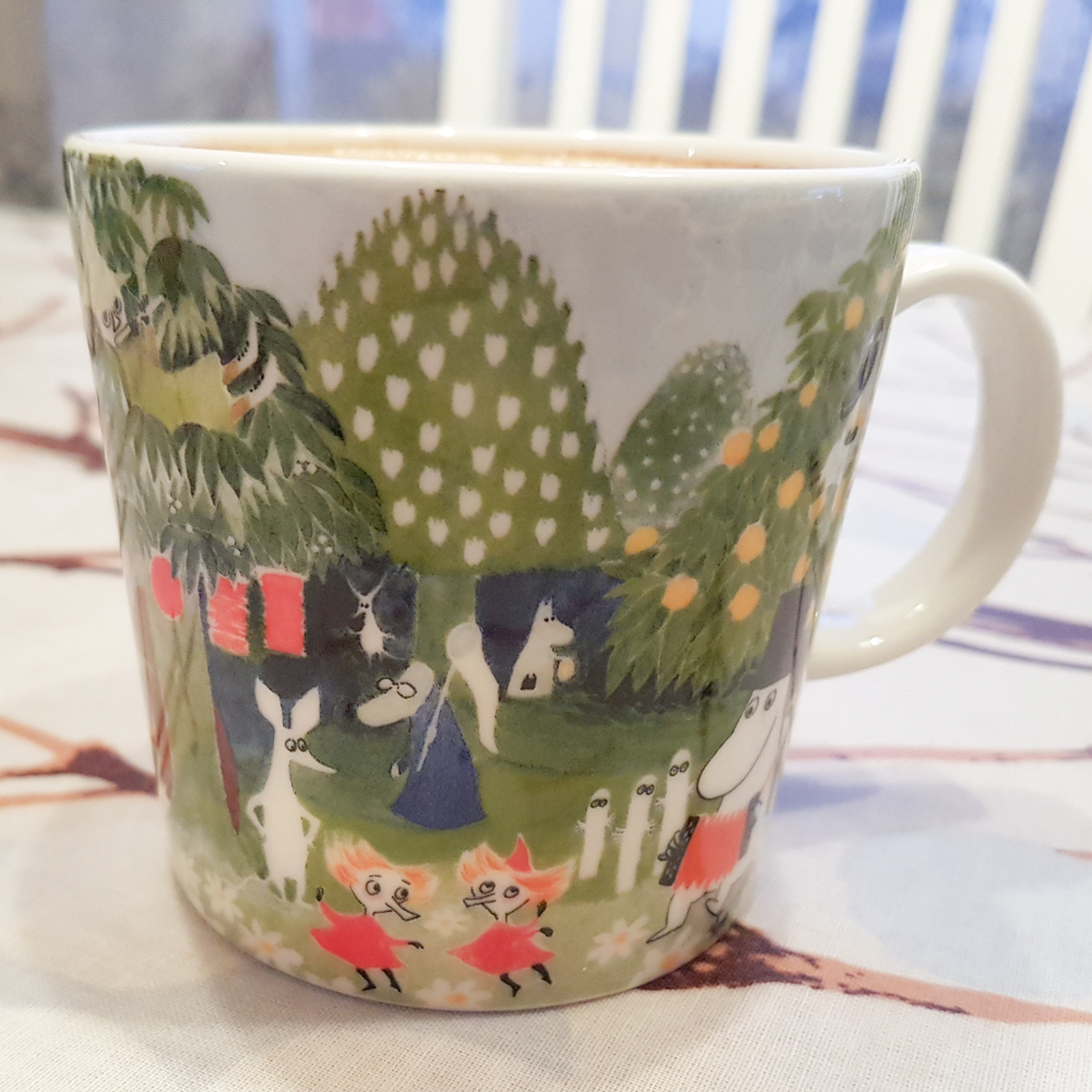 Ein ganz besonderes Mitbringsel sind aber die Tassen und Schokoladentafeln mit dem Mumin-Motiv das die Ausstellung begleitet. Es ist ein Aquarell von Tove Jansson, das natürlich die Mumins zeigt. Schön ist es, dass man eben den ursprünglichen Charakter des Bildes erhalten hat. Es ist eine ganz besondere Tasse in meiner „Sammlung“ ;)