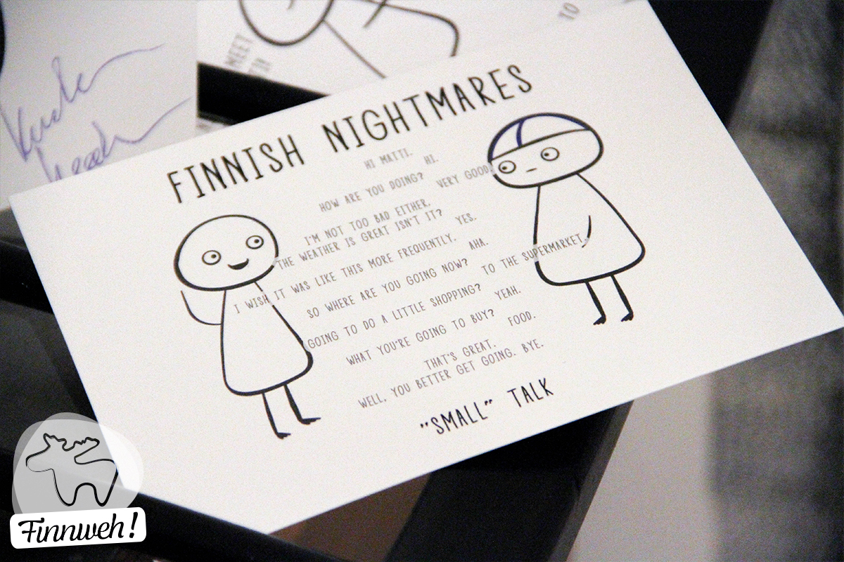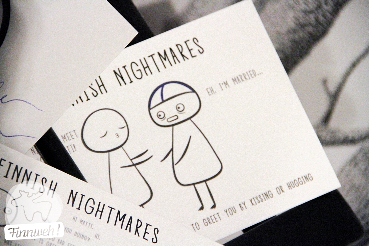 Matti ist die kleine Hauptfigur der Comic-Serie „Finnish Nightmares“ und durchlebt eben genau die Situationen die fast jedem Finnen unangenehm sind. Sei es, dass ihn jemand zur Begrüßung umarmen will, oder jemand Smalltalk hält.