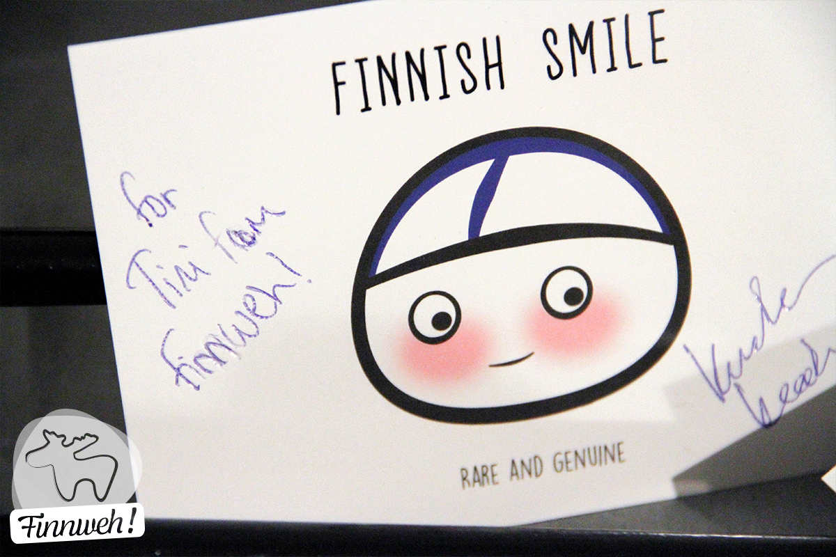 Weil Matti eine Frau hat und für sie ein Name gesucht wurde – jetzt heißt sie Aino – habe ich mich an der Umfrage dafür beteiligt. Unter den Teilenhmern wurden dann ein paar Gewinner ausgelost, die dann die hübschen Karten bekommen haben. Und auf meiner war sogar eine Widmung!